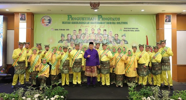 JURNALMERDEKA.id — JAKARTA. Gubernur Kepulauan Bangka Belitung (Babel), Hidayat Arsani, mengukuhkan Ketua dan Pengurus Ikatan Kekeluargaan Masyarakat (IKM) Provinsi Babel periode 2025–2028, yang berlangsung di Hotel Grand Sahid Jaya, Jakarta, Sabtu (11/10/2025).