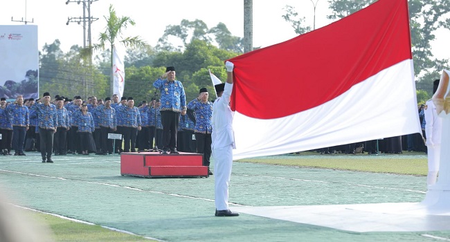 JURNALMERDEKA.id – PANGKALPINANG. Pemerintah Provinsi Kepulauan Bangka Belitung (Pemprov Kep. Babel) kembali menyelenggarakan Upacara Bendera Hari Kesadaran Nasional setiap tanggal 17 di halaman Kantor Gubernur, Air Itam, Senin (17/11/2025) pagi. Gubernur Kepulauan Bangka Belitung (Babel), Hidayat Arsani bertindak sebagai pembina upacara.
