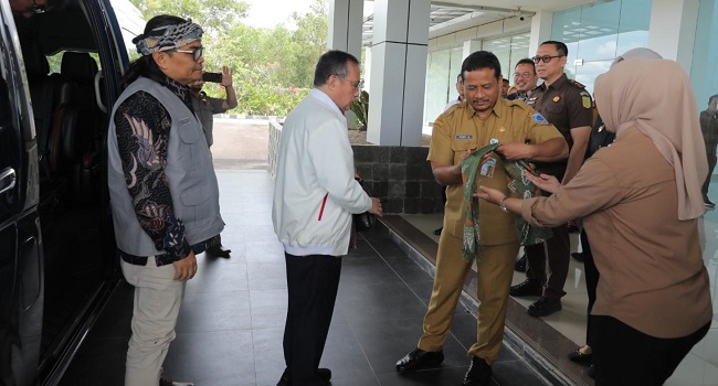 “Selamat datang di Bangka Belitung, Pak,” sambut Pj Sekda Fery seraya mengalungkan kain syal Cual khas Bangka Belitung kepada Yahya Zaini, pimpinan Tim Kunker Spesifik Komisi IX DPR RI.