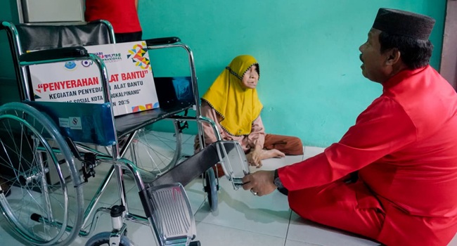 Sementara itu, salah satu penerima bantuan, mengaku sangat terbantu dengan adanya kursi roda yang ia terima.