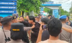 JURNALMERDEKA.id – PANGKALPINANG. Puluhan mahasiswa menggelar aksi unjuk rasa di depan Kantor Bea Cukai Pangkalpinang, Jumat (19/12/2025).