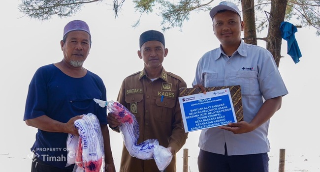 PT TIMAH Tbk menyerahkan bantuan berupa alat tangkap sesuai kebutuhan nelayan, antara lain jaring ikan, jaring udang, jaring kepiting, batu pemberat serta perlengkapan pendukung lainnya.